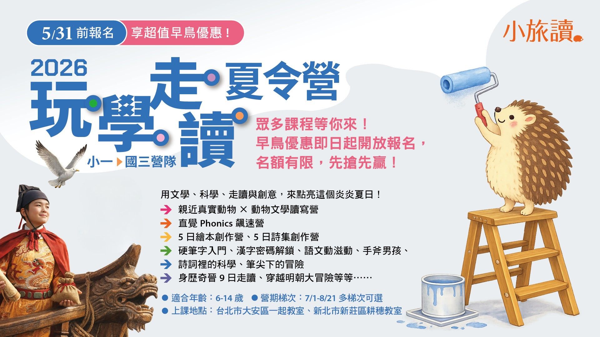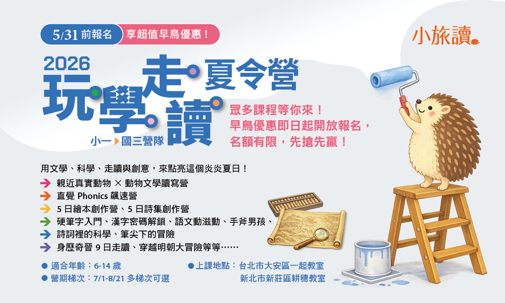小旅讀 玩經典、長智識! 小旅讀針對國小至高中學生及其家長,以及對經典、國語文有興趣的成人;以有趣的知識遊戲、活動、課程、音頻、雜誌專欄、出版品,化經典為養分。 希望大家皆擁有穿梭經典的能力、人文思辨的智慧,多識、全觀、清楚澄明而柔軟。 作文健檢 「語文」是表情達意的工具,也是人際溝通的媒介,更是傳承文化和生命經驗的重要載體──從口語表達到書面寫作,透過規劃完整的「作文健檢」制度,將能有效提升。我們的優勢如下: 背景多元的閱卷團隊:成員包括大專院校教師、作家、語文專業領域的碩、博士乃至於各行各業的文字使用者,能提供務實的建議。規格化的評鑑標準:以具體的等級標準取代模稜兩可的印象式評語,並提供「寫作力分析圖」供作參照,以期參與健檢者能充分掌握自身寫作的長處和短板。以素養為主的訓練:提供「延伸閱讀」和「寫作指導」等內容,協力參與健檢者擴展思考界域,將「閱讀力」、「寫作力」內化為個體自帶的核心素養,成為其一生受用的知能。 作文上傳 0 書籍介紹 0 健檢師資 0 作品欣賞 0 作文健檢流程 01. 上傳文章檔案 02. 填寫報名資料 03. 選擇健檢方案 04. 完成繳費作業 05. 收取健檢報告 活動 【小旅讀親子活動】思多力老師帶你遊繪本! 2026玩學走讀夏令營 【旅讀識界_小旅讀文化空間】日本端午味:手做日本粽子開始的日語小旅行 小旅讀文化空間